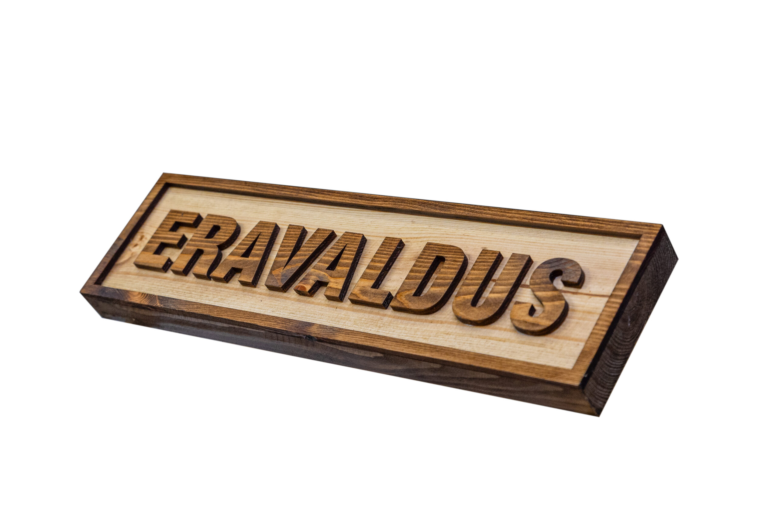 - Puidust ERAVALDUS silt, tekst välja lõigatud ja liimitud veekindla liimiga