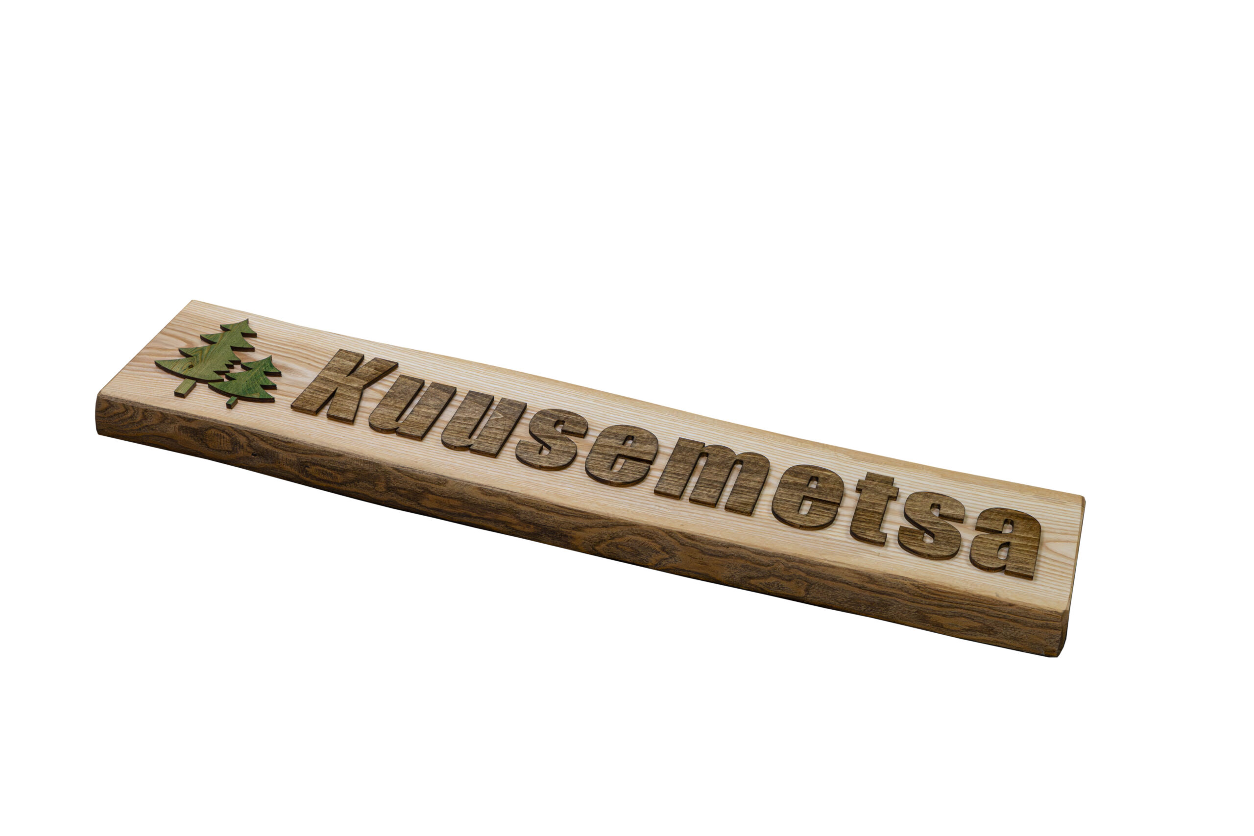 - Mõõdud: 40 cm x 12 cm, puidust sildi alusmaterjali on kuusk (22 mm), teksti materjal kuusk (6 mm).